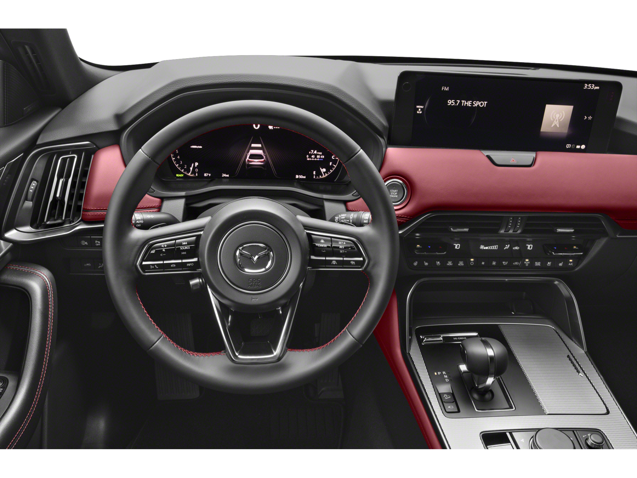 Leather Seats, Navigation, Sunroof, Panoramic Roof, All Wheel Drive. Mazda CX-70 3.3 Turbo S Premium with Jet Black Mica exterior and Red interior features a Straight 6 Cylinder Engine with 340 HP at 5000 RPM*.