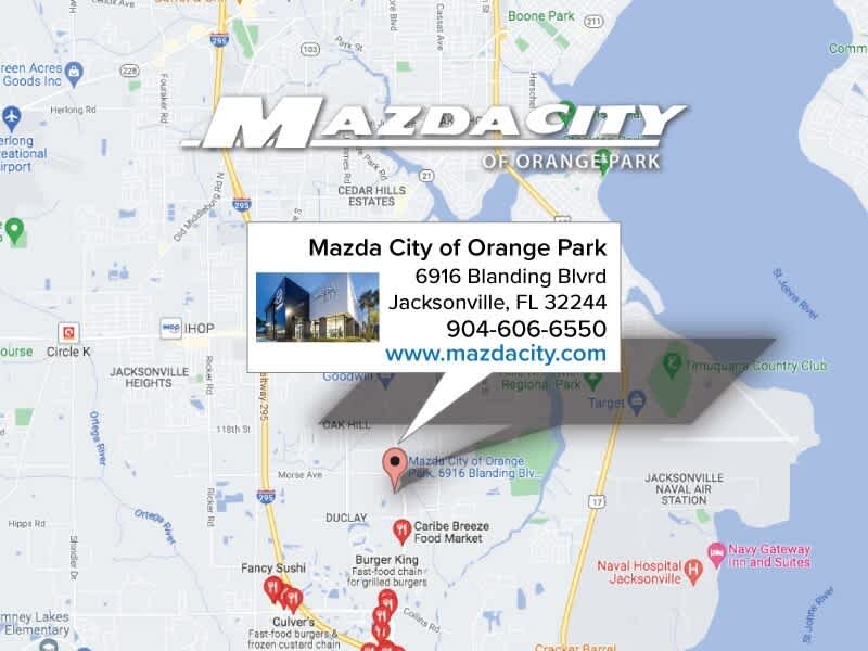 Mazda City of Orange Park located at 6916 Blanding Blvd. is your Mazda source in Jacksonville, FL. We provide new and pre-owned sales, as well as onsite financing options. We are also your connection for Mazda parts and service. Please contact us at 904 779-0600, or research our website for your Mazda needs.